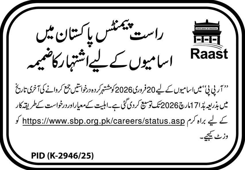 State Bank of Pakistan Jobs Online Apply for Raast Payments Pakistan Careers 2026