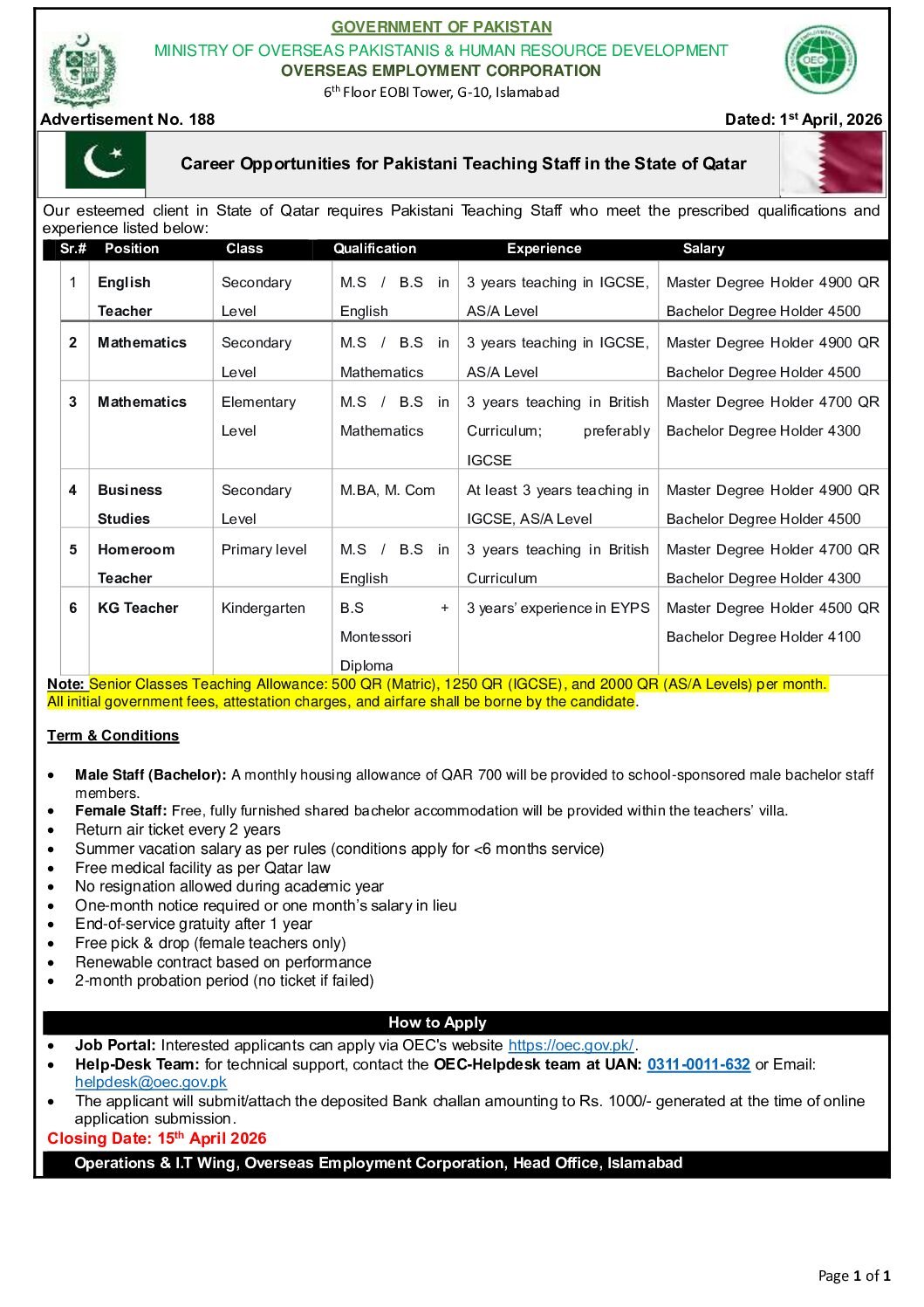 Qatar is one of the fastest-growing countries in the Gulf region, especially in the education sector. Many schools and institutions hire foreign teachers, including Pakistanis, through official platforms like OEC.