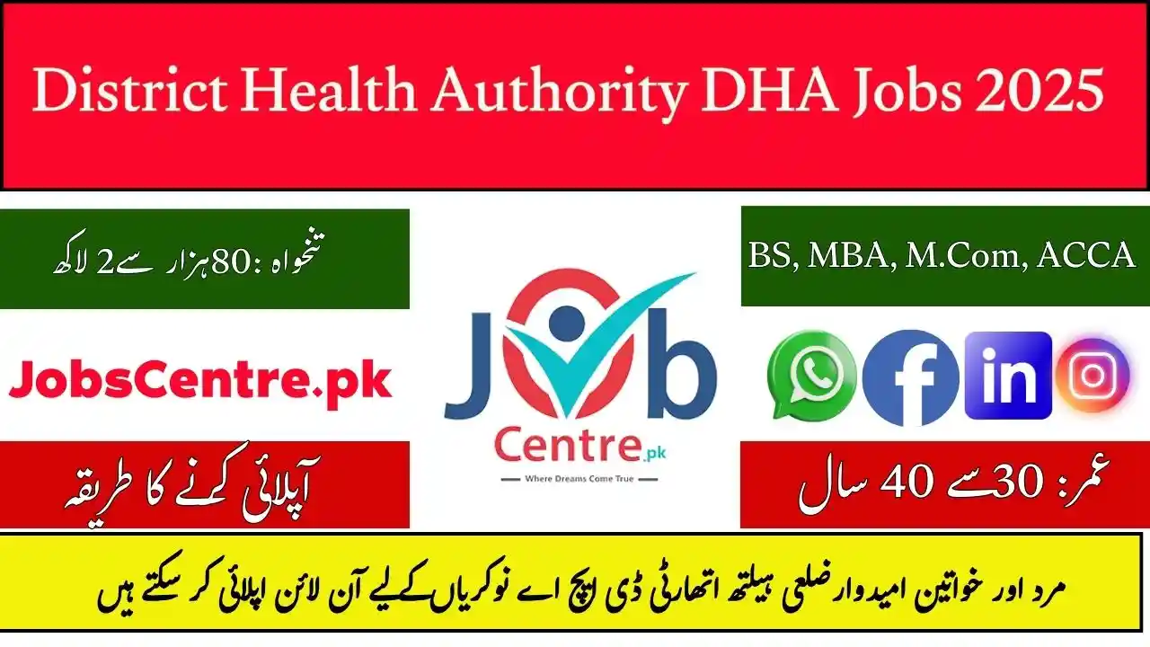 District Health Authority DHA Jobs are now open for recruitment in various positions. Candidates with BS, MBA, M.Com, ACCA, BS Nursing, Diploma Nursing, B.Sc, B.E, qualifications are eligible to apply. The last date to the DHA latest jobs apply is 7th September 2025.