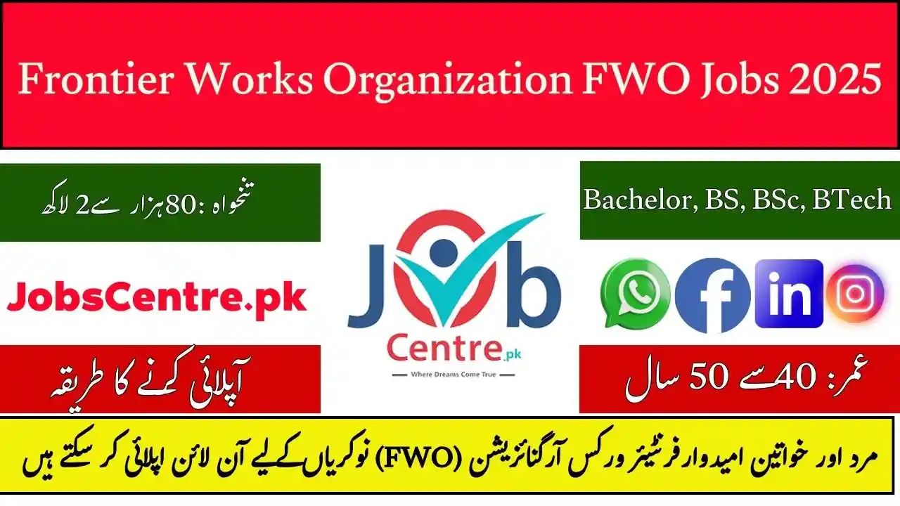 This page provides information about Frontier Works Organization FWO Jobs 2025. Eligible candidates seeking Government Jobs in Islamabad are encouraged to apply for these opportunities.