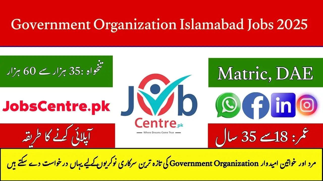 - More details are available in the attached Government Organization Islamabad Jobs 2025 advertisement.