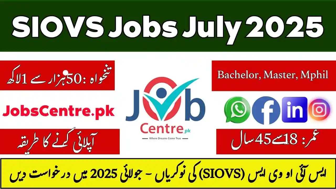30 July, 2025 is the last date to submit application for SIOVS Career Opportunities 2025 career opportunities.