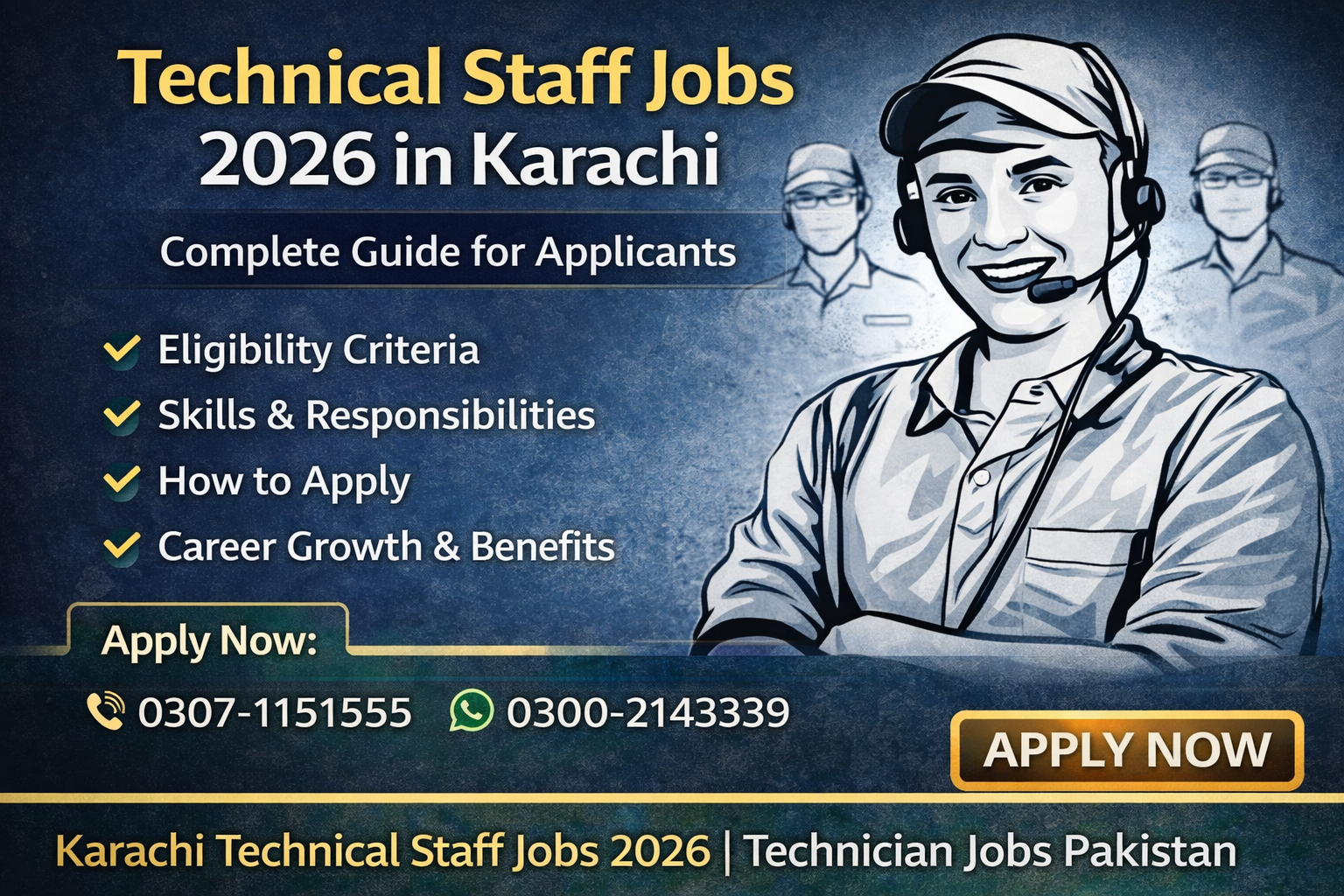 Many people are searching online for technical staff jobs in Karachi, technician jobs in Pakistan, technical jobs 2026, and how to apply for technical staff positions. This opportunity is suitable for people who want to build a career in the technical field and work in a professional environment.